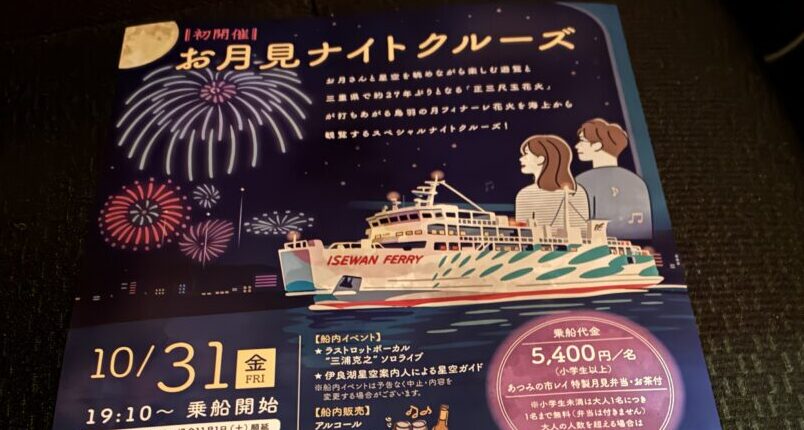 伊勢湾フェリーが初運航する「お月見ナイトクルーズ」は、夜景と大迫力の花火を海上から満喫する、まさに「海上の特等席」になります。