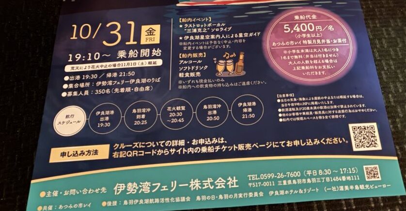 【田原市】「お月見ナイトクルーズ」で海上から星空や花火を楽しんでみませんか?