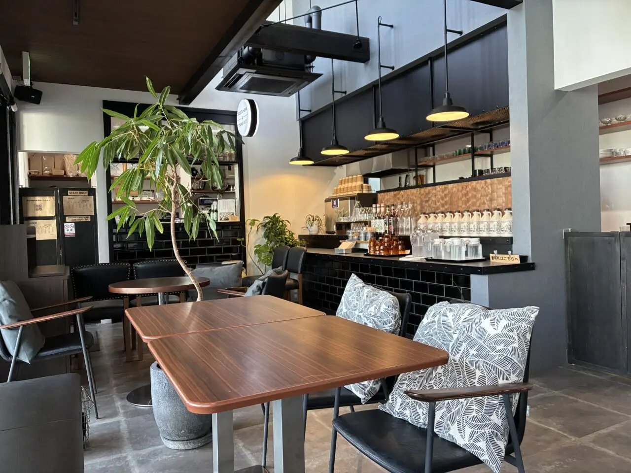 店内は、白と黒を基調としたシックでモダンなインテリアで統一されており、落ち着いた雰囲気が漂います。