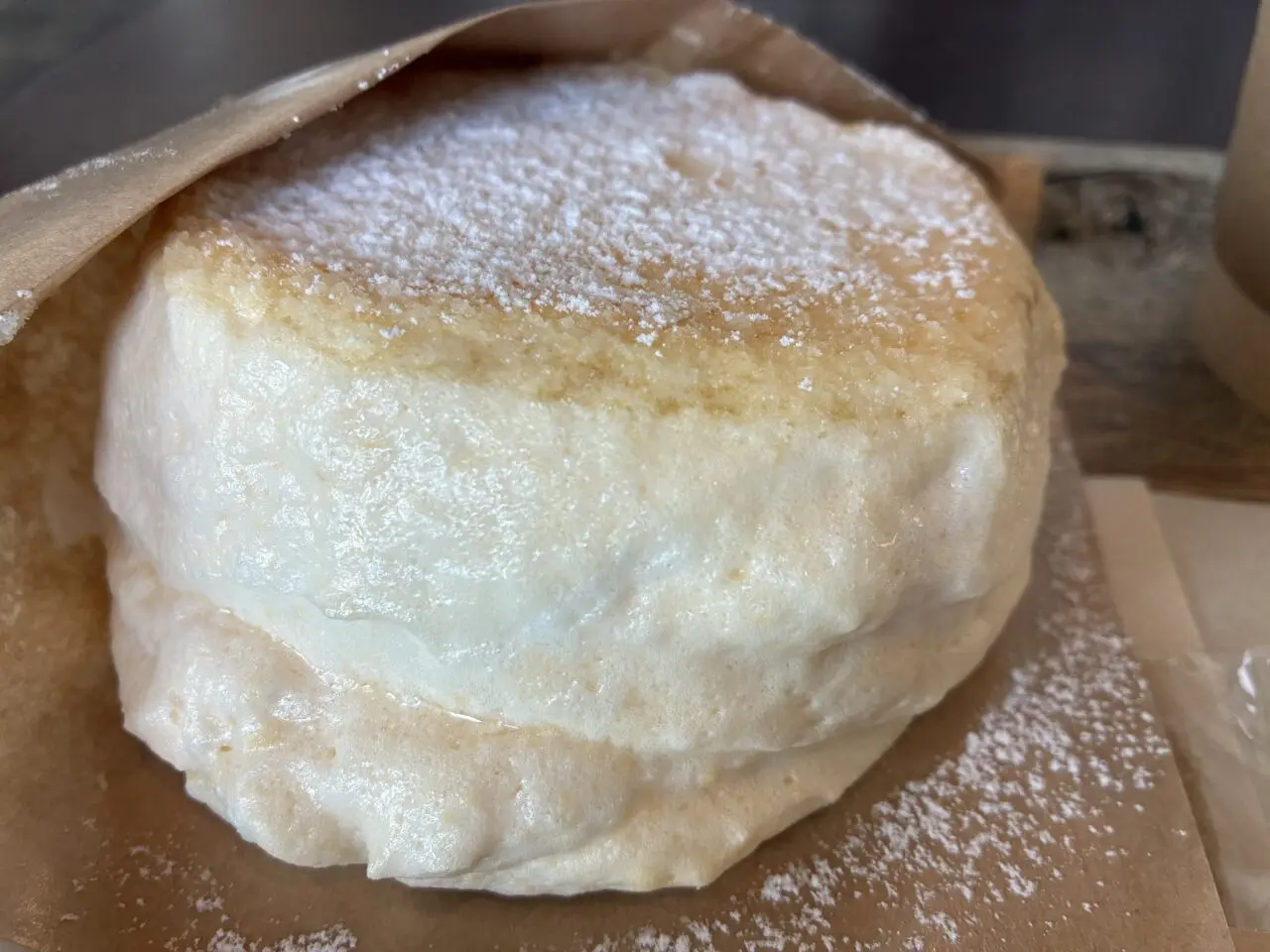注文を受けてからじっくり焼き上げるため、口の中でしゅわっと溶けるような、雲のようなふわふわの食感が楽しめます。