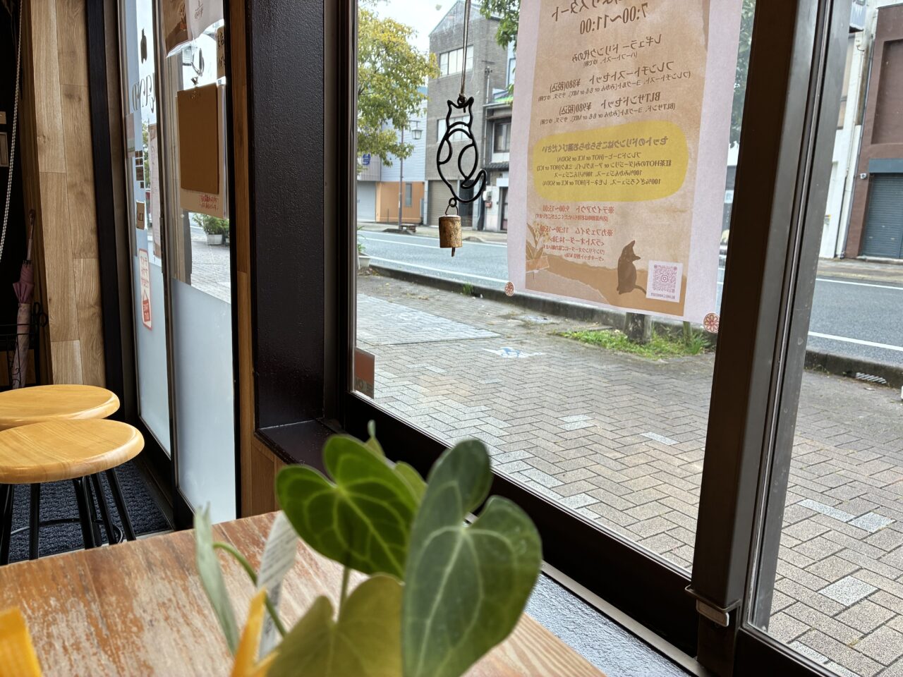 窓際の席からは、朝の静けさが漂う街の風景を眺められます。