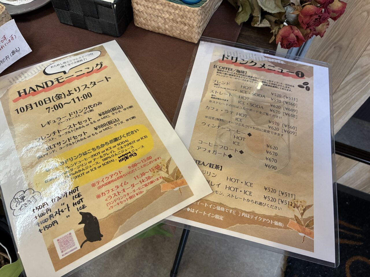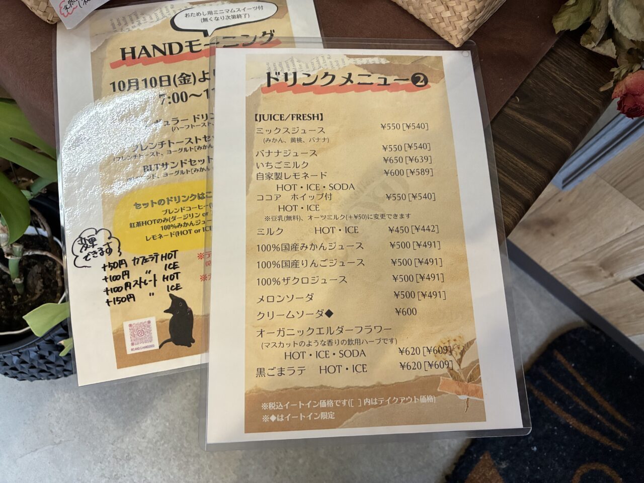 HANDさんのモーニングの魅力は、これだけではなく、ドリンクメニューが豊富なところ。