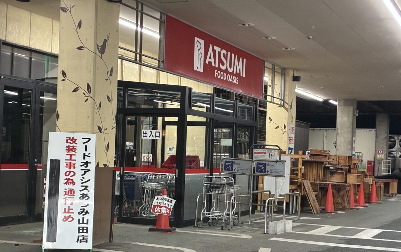 その「フードオアシスあつみ」の山田店が2025年11月4日(火)から改装工事のためお休み中です。