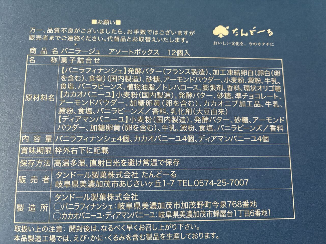 バニラフィナンシェとカカオバニーユ、ディアマンバニーユのクッキーが入っています。