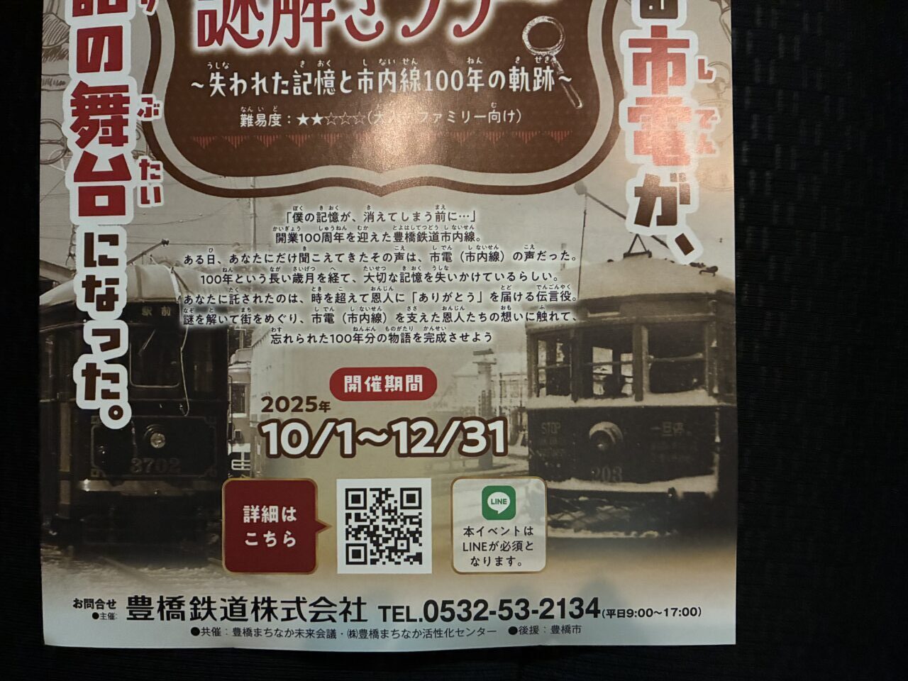 2025年この冬、ぜひチャレンジしてほしいのが、まもなく終了を迎える豊橋鉄道市内線開業100周年記念「謎解きラリー ~失われた記憶と市内線100年の軌跡~」です。