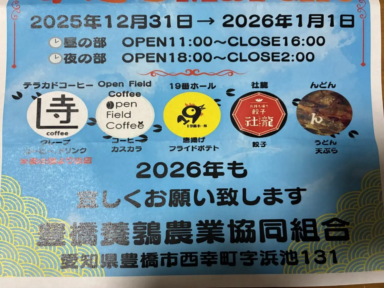 2025年12月31日(水)から2026年1月1日(木)にかけて、豊橋養鶉農業協同組合で開催されるこのイベント。