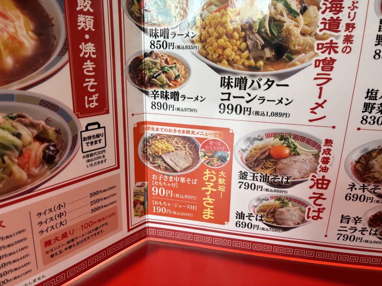 ご家族で楽しんでほしい、との思いからお子さまメニュー「お子さま中華そば【おもちゃ付】」もあります。