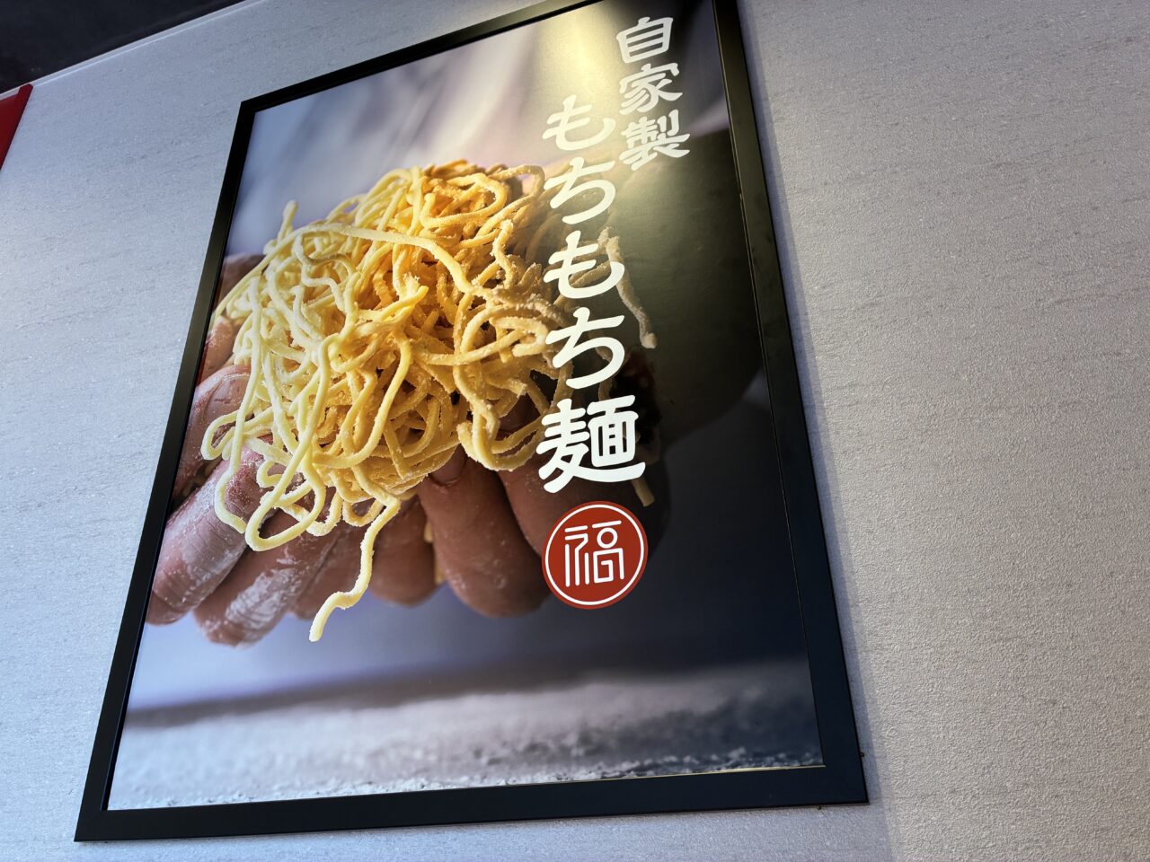 自家製の「もちもち麺」は、店内で製麺し、しっかり熟成させた麺。
