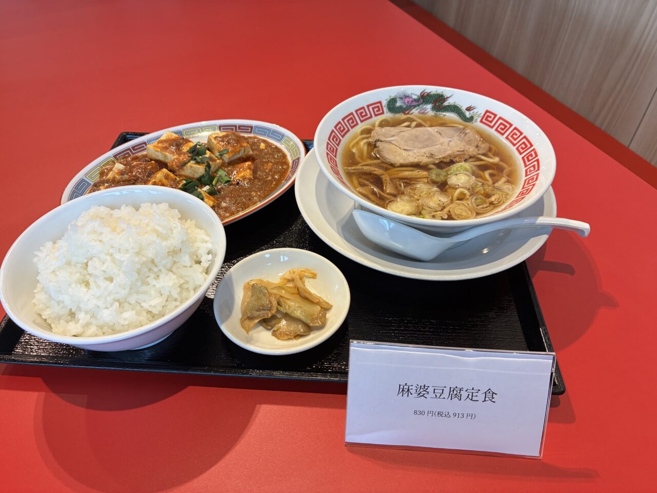 もちもち麺の中華そば(小)と、本格中華料理の両方が楽しめて、ザーサイまで付いたセットです。