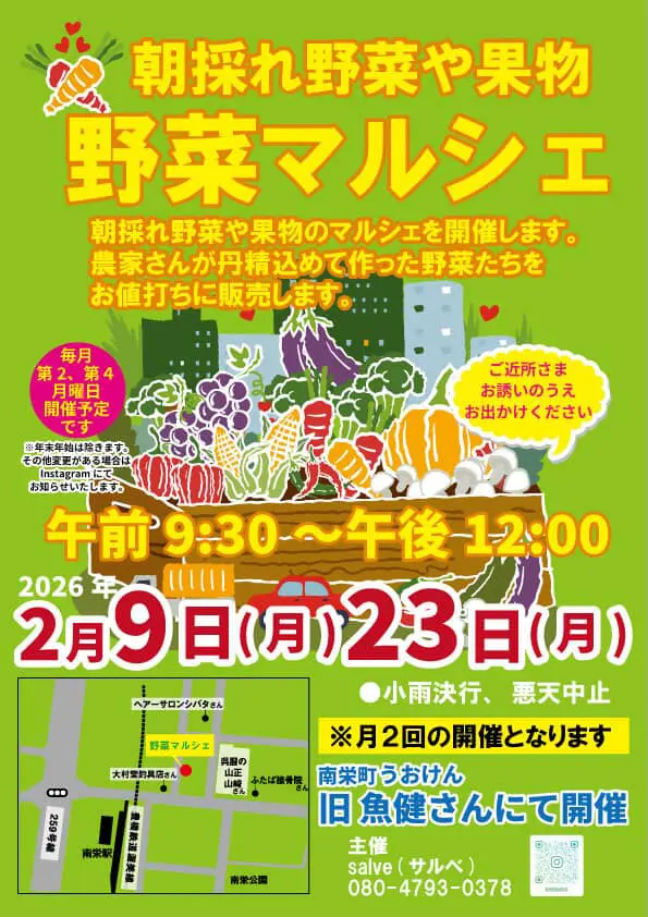 農家さんが丹精込めて育てた、旬の恵みが一堂に会する「野菜マルシェ」が2026年2月23日(月・祝)に開催されます。