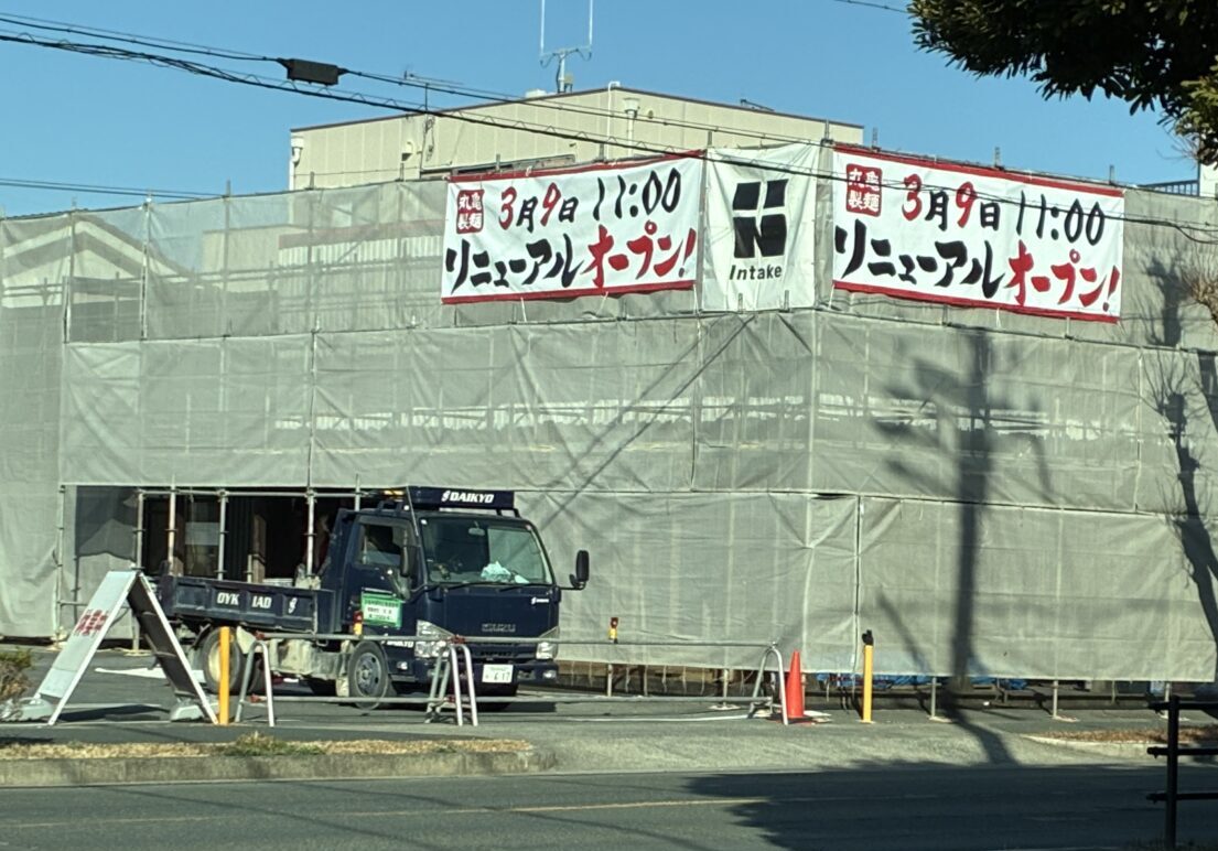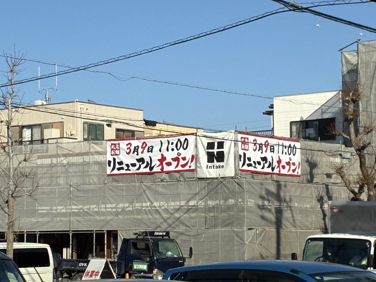 豊岡町で親しまれている「丸亀製麺 豊橋」が、現在リニューアル工事のため一時休業中です。