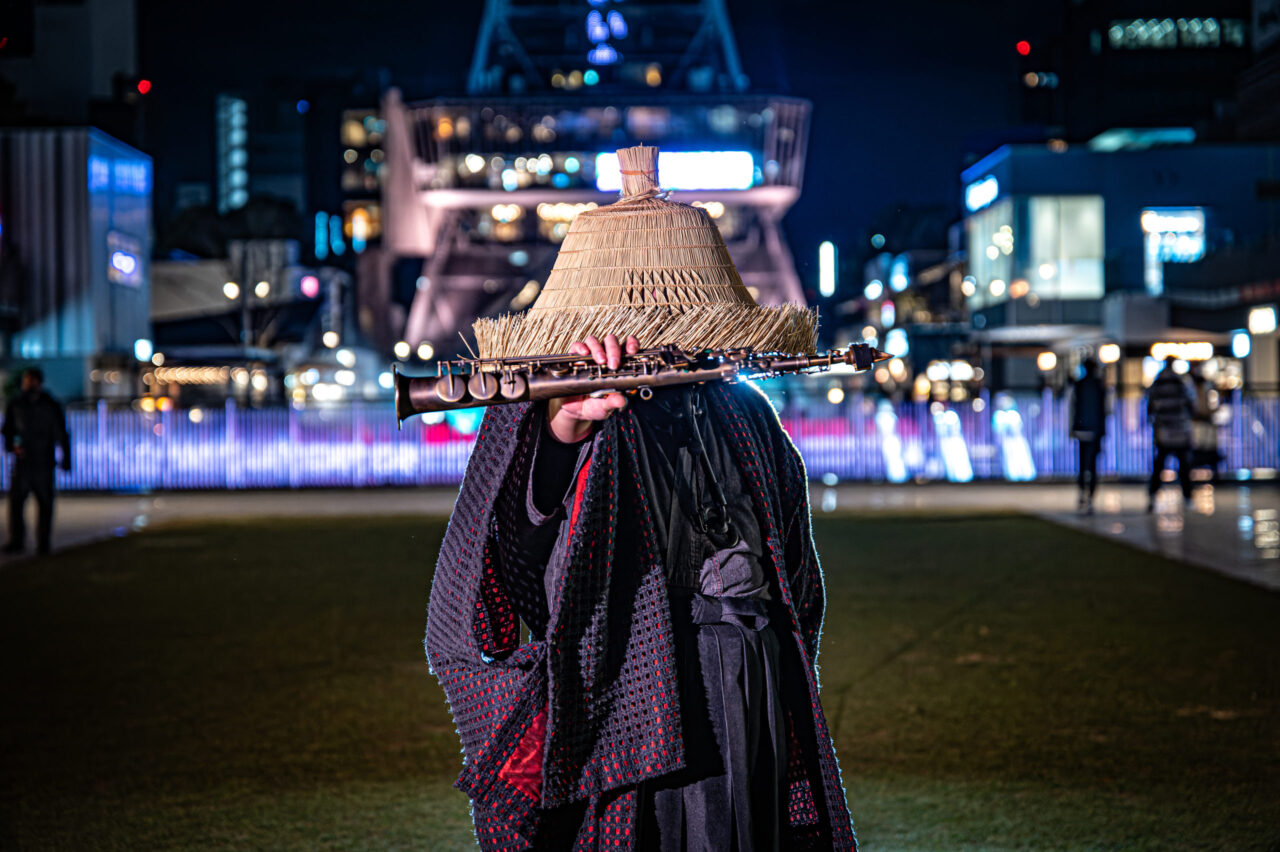 コロナ禍に活動を始め、武士の装束で優しく心に寄り添うようなサックスの音色を響かせる姿は、唯一無二のパフォーマンス。