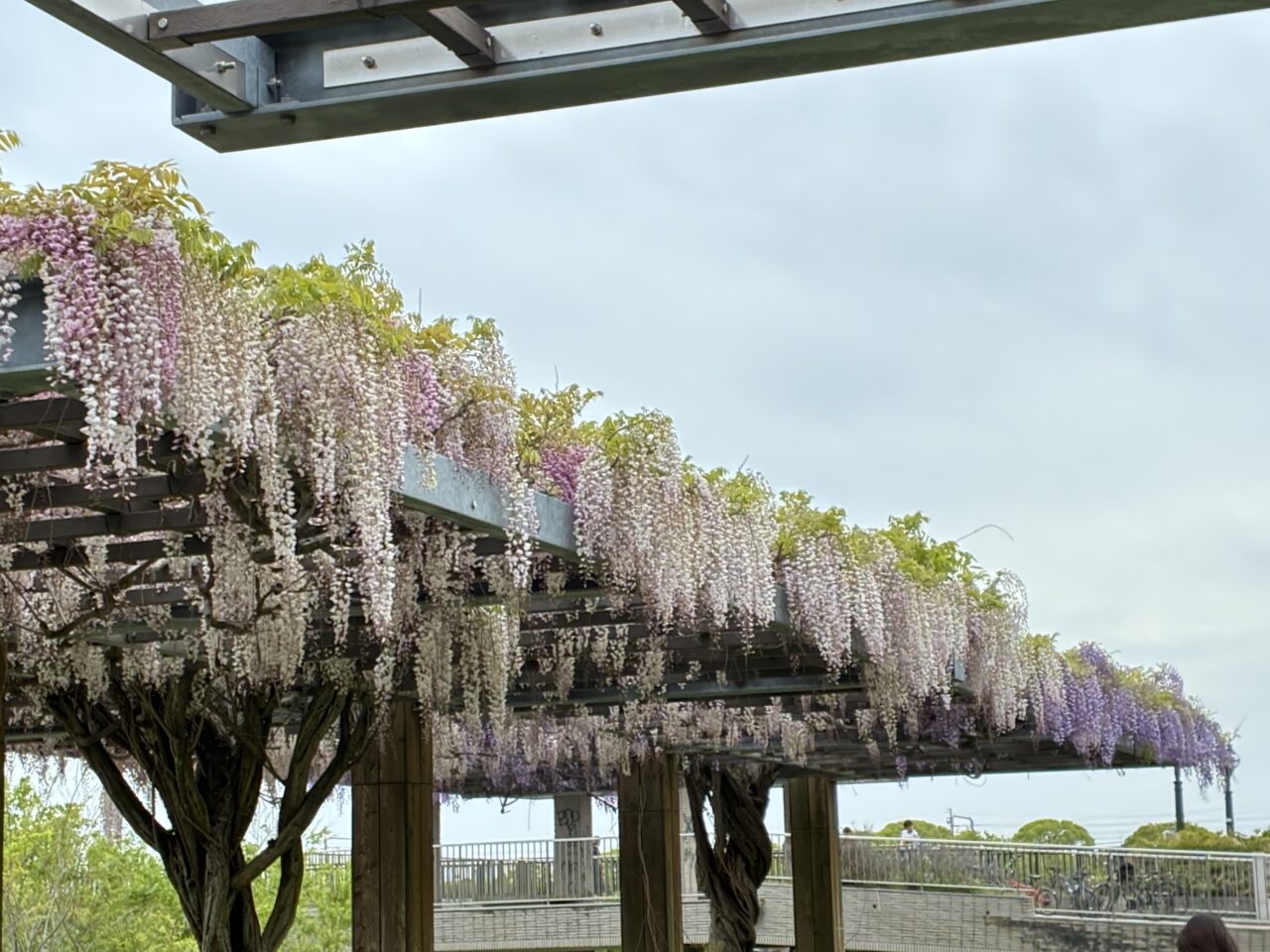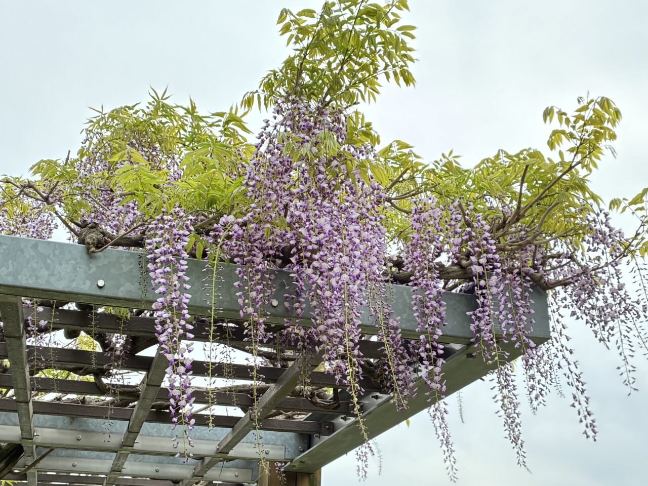 場所によって少しずつ色合いや長さが異なるため、73本の藤の木それぞれの表情を比べながら歩くのが、今の時期だけの贅沢な楽しみ方です。