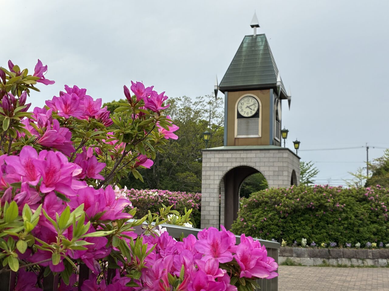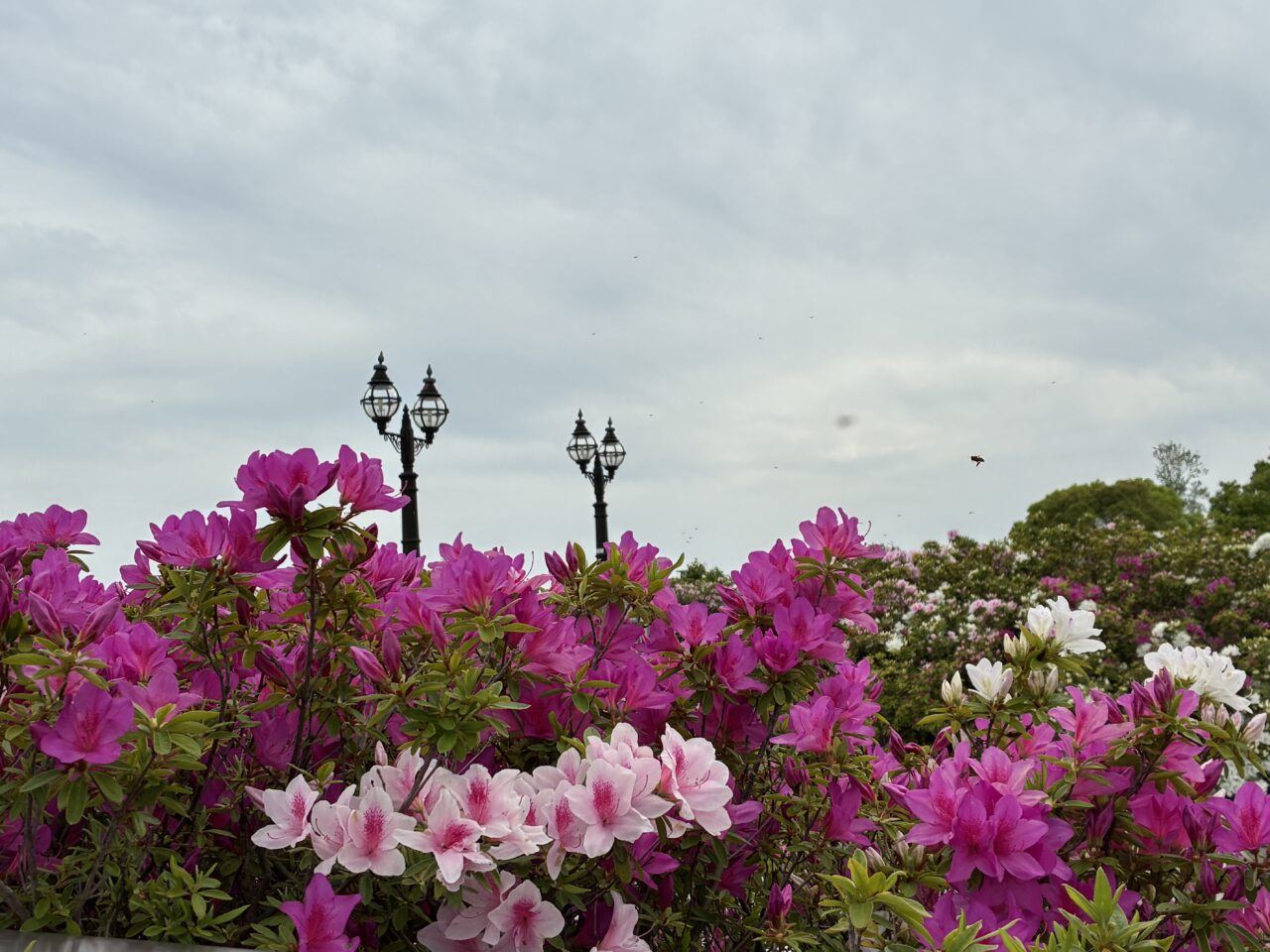 つつじのビビッドなピンクや淡いピンク、白が加わることで、公園全体がより華やかな景色となっています。