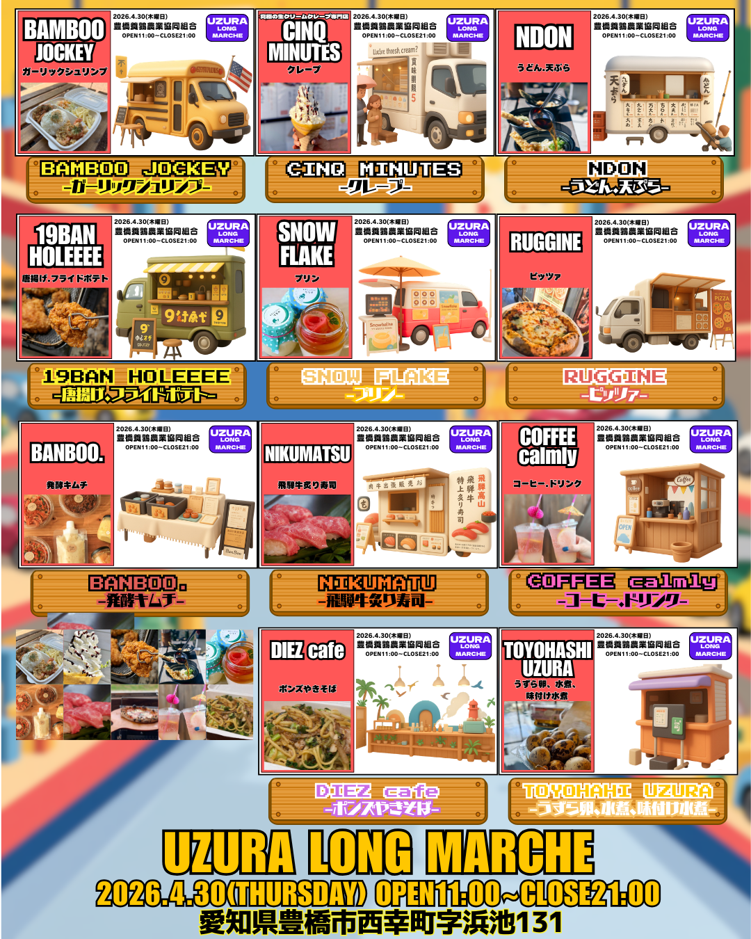 「UZURA LONG MARCHE」開催情報をお寄せくださりありがとうございました!